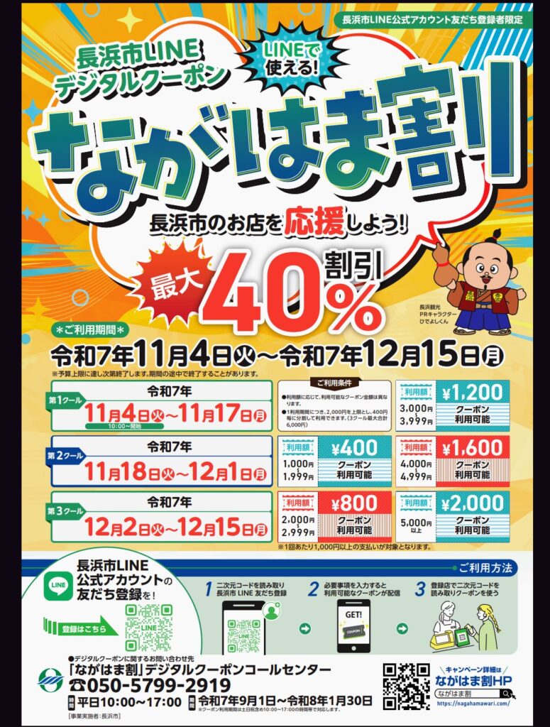 11/4〜長浜市公式LINEデジタルクーポンが配信されます!