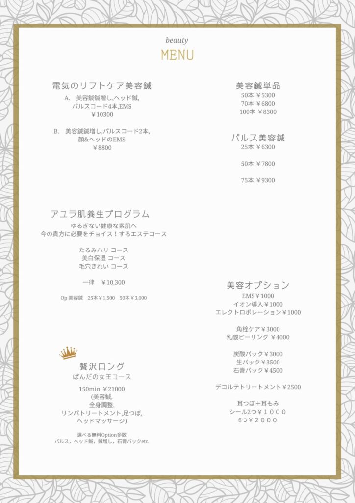 お好みでパルス(1500円〜)も